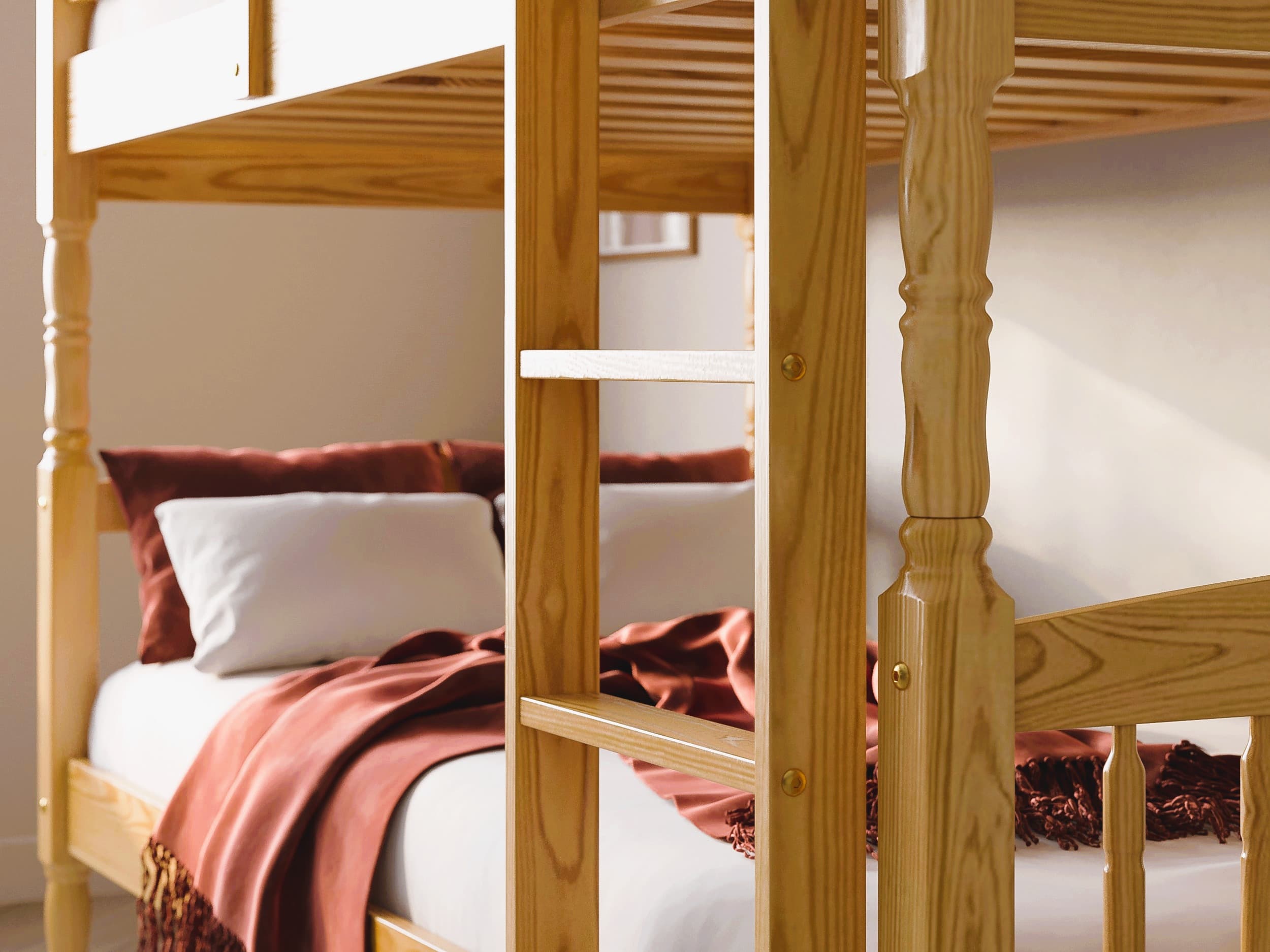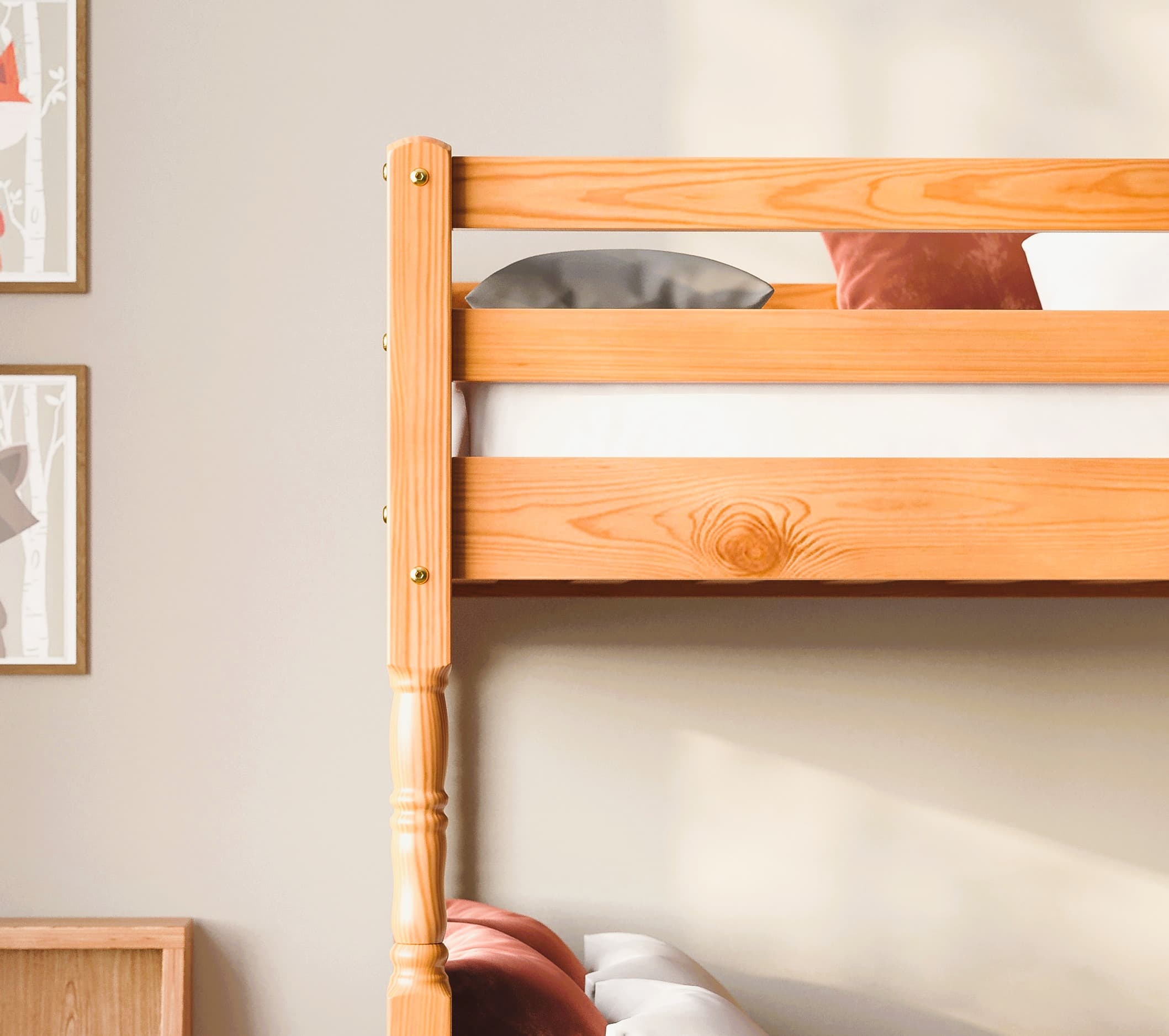 We use high-quality pine wood known for its strength, durability, and natural beauty. This ensures each children's bunk bed has a timeless look and lasts through years of use.